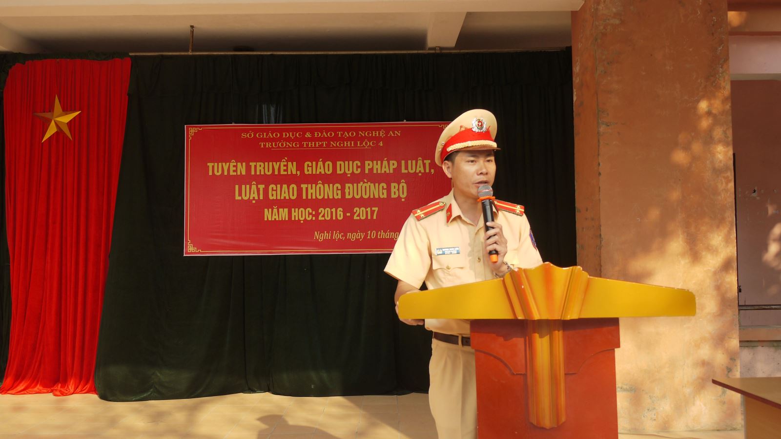 Tham gia buổi tuyên truyền có đồng chí Nguyễn Văn Phương bí thư chi bộ - hiệu trưởng nhà trường và các đồng chí trong ban giám hiệu nhà trường, Các đồng chí trong đội cảnh sát giao thông Huyện Nghi Lộc, Đại diện Công An xã Nghi Xá và toàn bộ cán bộ giáo viên học sinh trường THPT Nghi Lộc 4.
