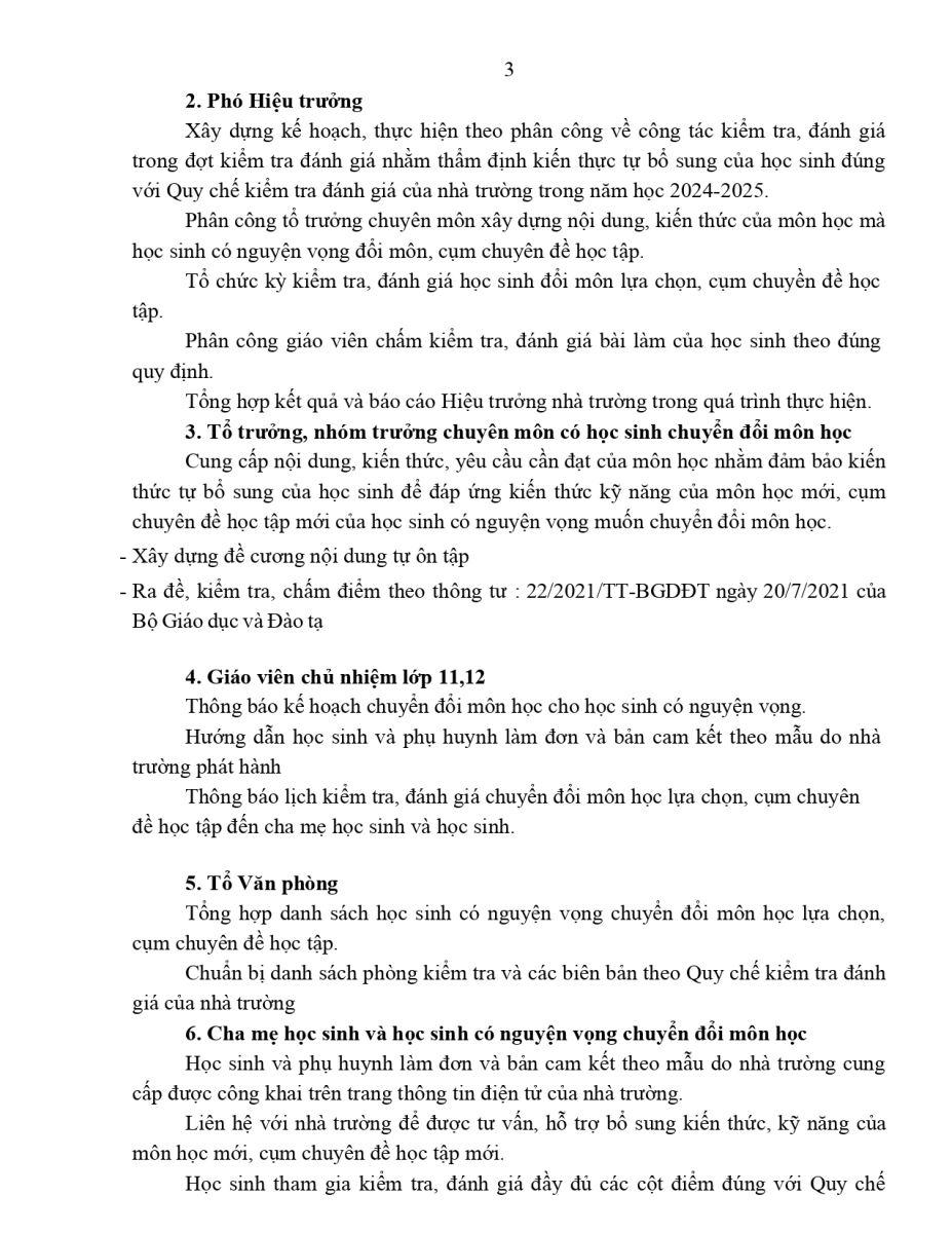 Kế hoạch chuyển đổi môn học, Chuyên đề học tập