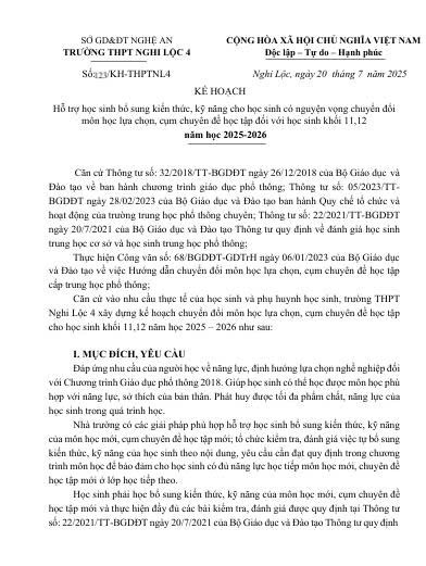 KẾ HOẠCH TRƯỜNG THPT NGHI LỘC 4.