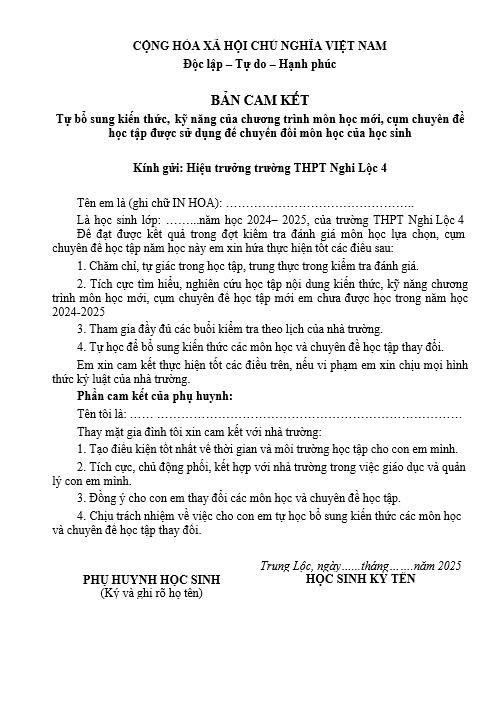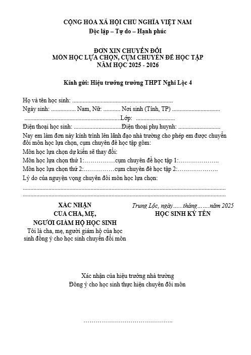 Học sinh tải đơn xin chuyển đổi tại đây: