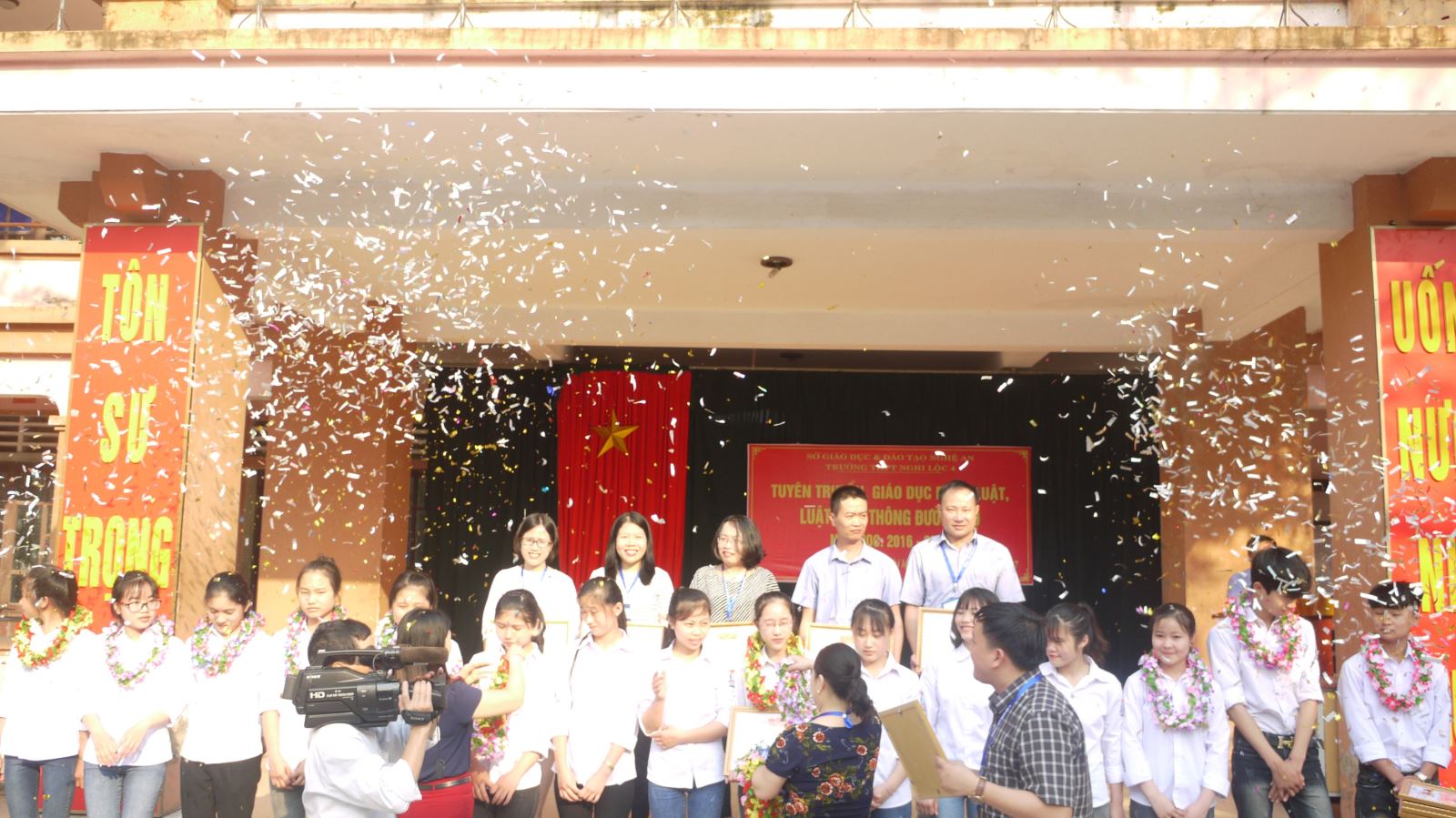 Một không khí tràn ngập niềm vui, hạnh phúc của thầy trò trường THPT Nghi Lộc 4 trong ngày thứ 2- khởi đầu một tuần học mới với lễ trao thưởng cho giáo viên và học sinh. Trang trọng, với giấy khen, vòng nguyệt quế...