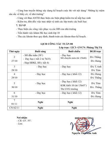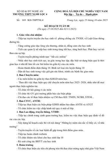 Kế hoạch công tác tuần 08 năm học 2025-2026
