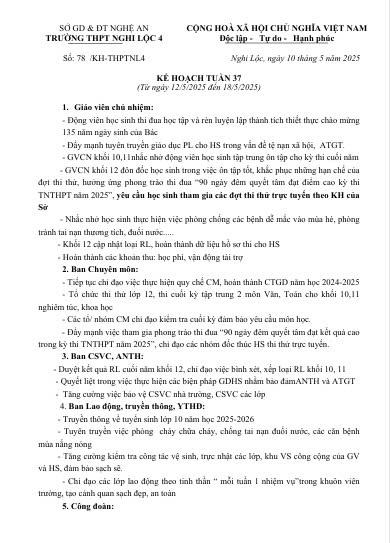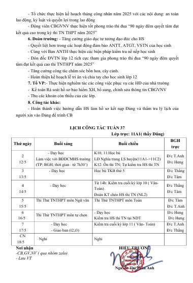 Lịch công tác tuần 37 năm học 2024-2025
