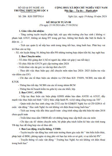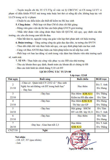 Lịch công tác tuần 8 năm học 2024-2025