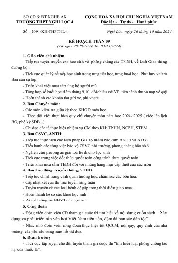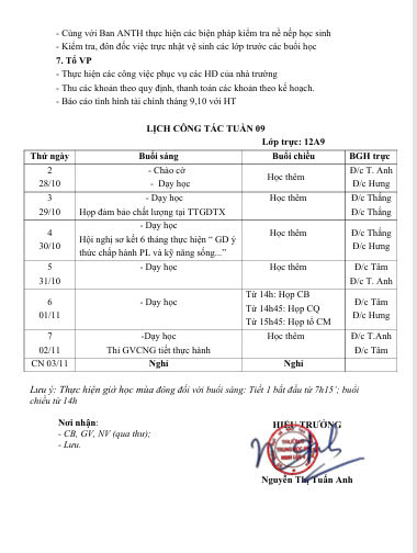 Lịch công tác tuần 9 năm học 2024-2025
