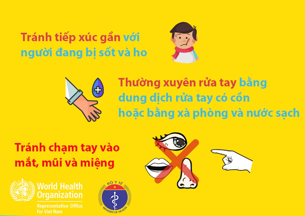 - Tránh chạm tay vào mắt, mũi, miệng;