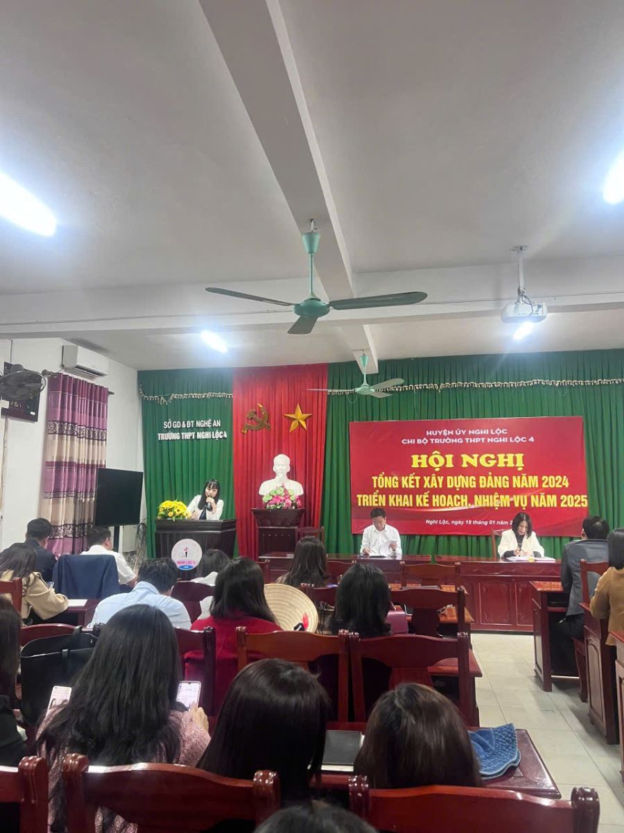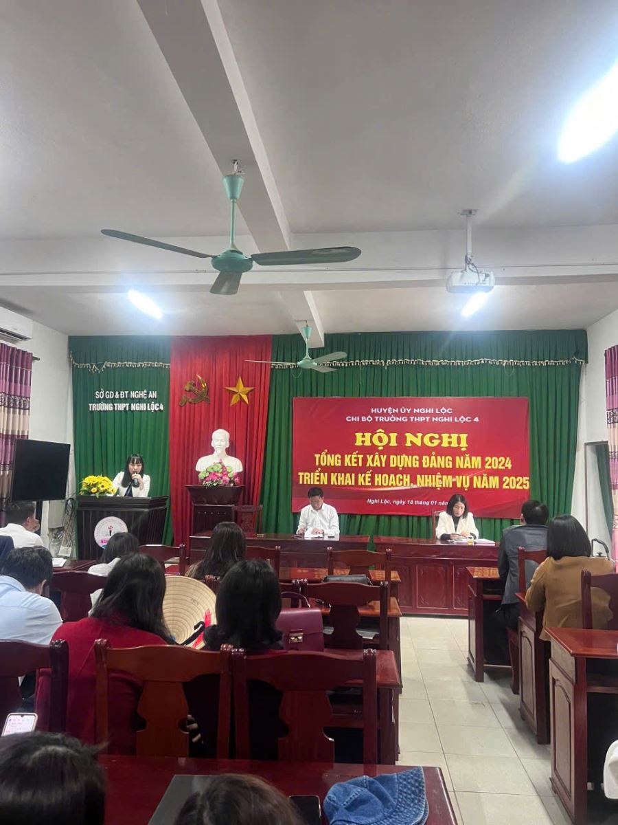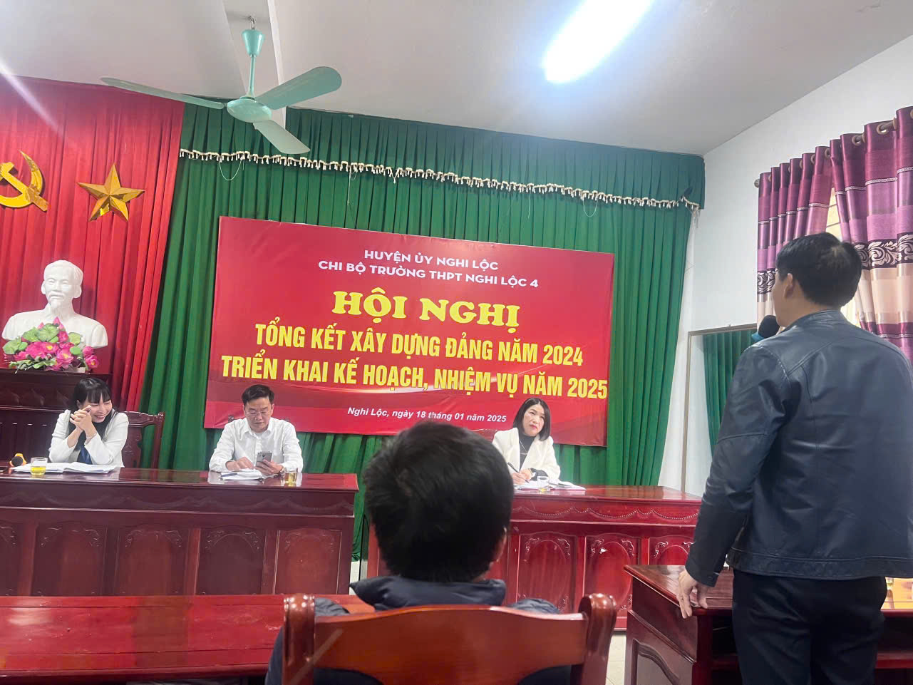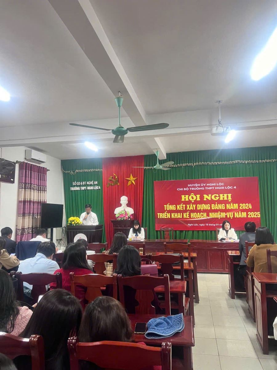 Thực hiện Công văn sự chỉ đạo của Huyện ủy Nghi Lộc về tổng kết công tác xây dựng Đảng năm 2024. Chiều ngày 18 tháng 1 năm 2025, Chi bộ trường THPT Nghi Lộc 4 tổ chức Hội nghị tổng kết công tác xây dựng Đảng năm 2024 và đề ra chương trình công tác năm 2025.