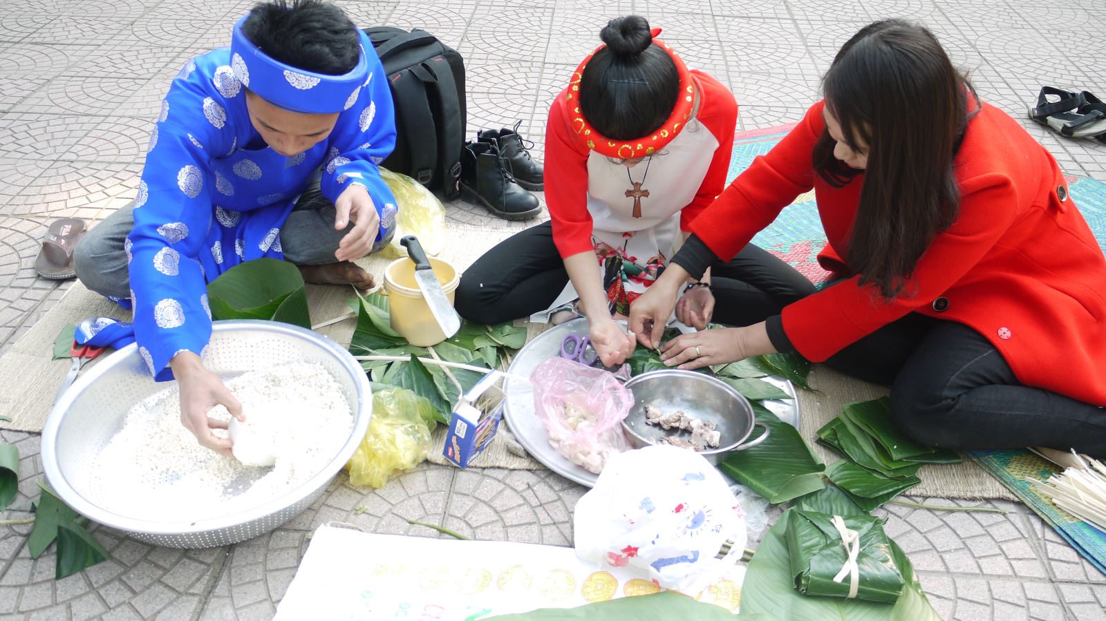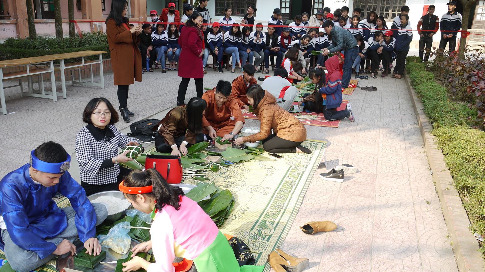 Chiều nay (7/2/2018) các chi đoàn thi gói bánh chưng trong không khí vô cùng nhộn nhịp. Mỗi lớp cử mội đôi nam – nữ mặc trang phục truyền thống, chuẩn bị đầy đủ nguyên vật liệu.