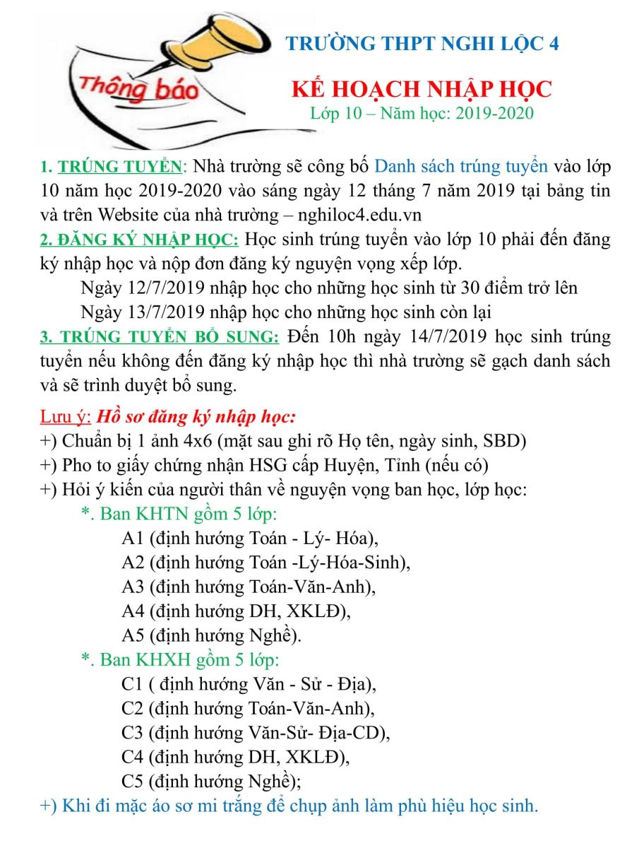 Kế hoạch nhập học lớp 10_ Năm học: 2019-2020