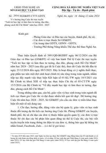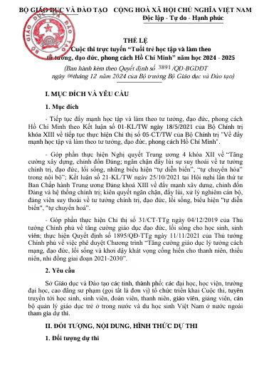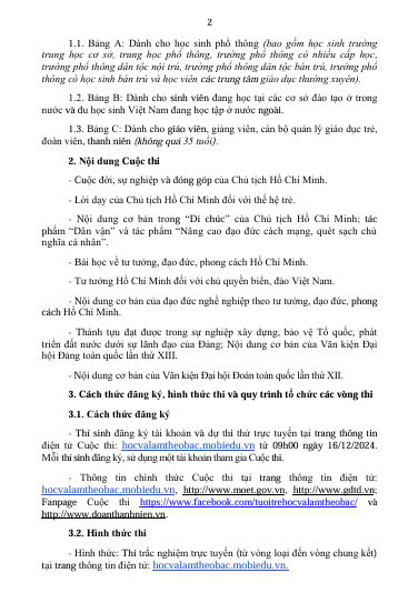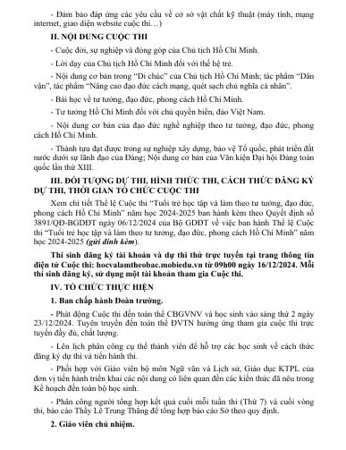 Cuộc thi trực tuyến “Tuổi trẻ học tập và làm theo tư tưởng, đạo đức, phong cách Hồ Chí Minh” năm học 2024-2025
