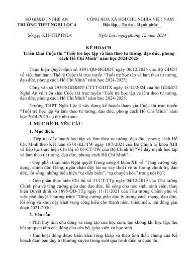 KẾ HOẠCH TRƯỜNG THPT NGHI LỘC 4.