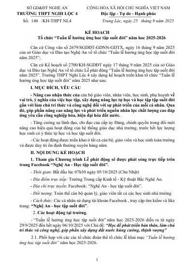KẾ HOẠCH TRƯỜNG THPT NGHI LỘC 4.