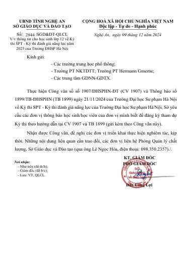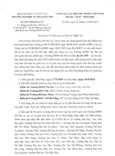 Kỳ thi SPT - Kỳ thi đánh giá năng lực  năm 2025 của Trường ĐHSP Hà Nội