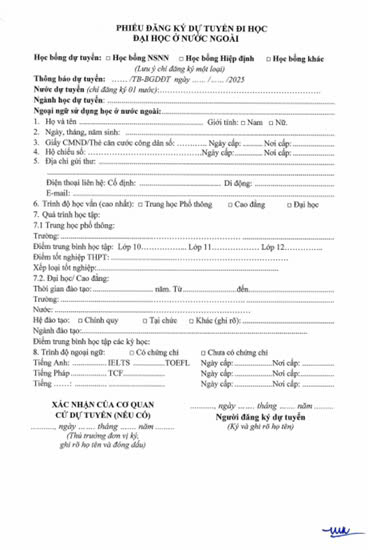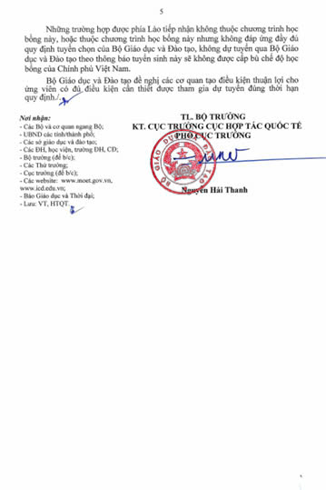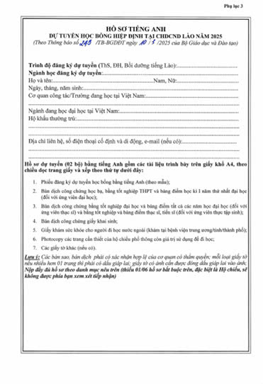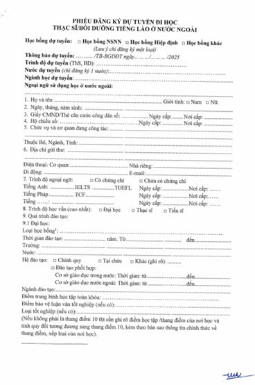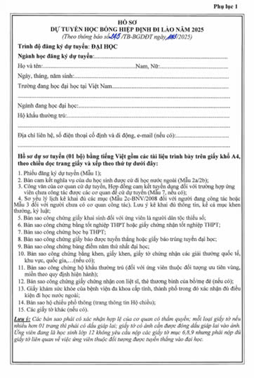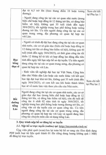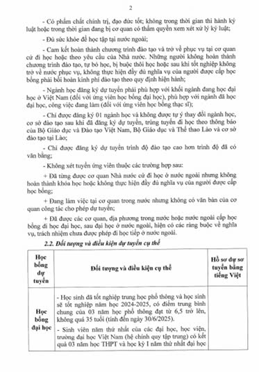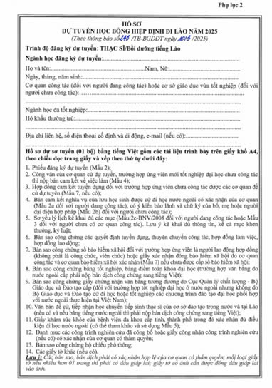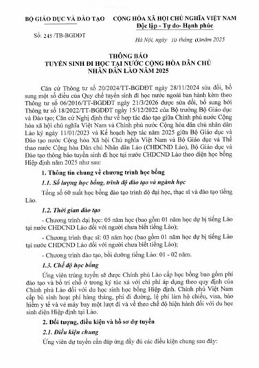 Tuyển sinh đi học tại  nước CHDCND Lào theo diện học  bổng Hiệp định năm 2025